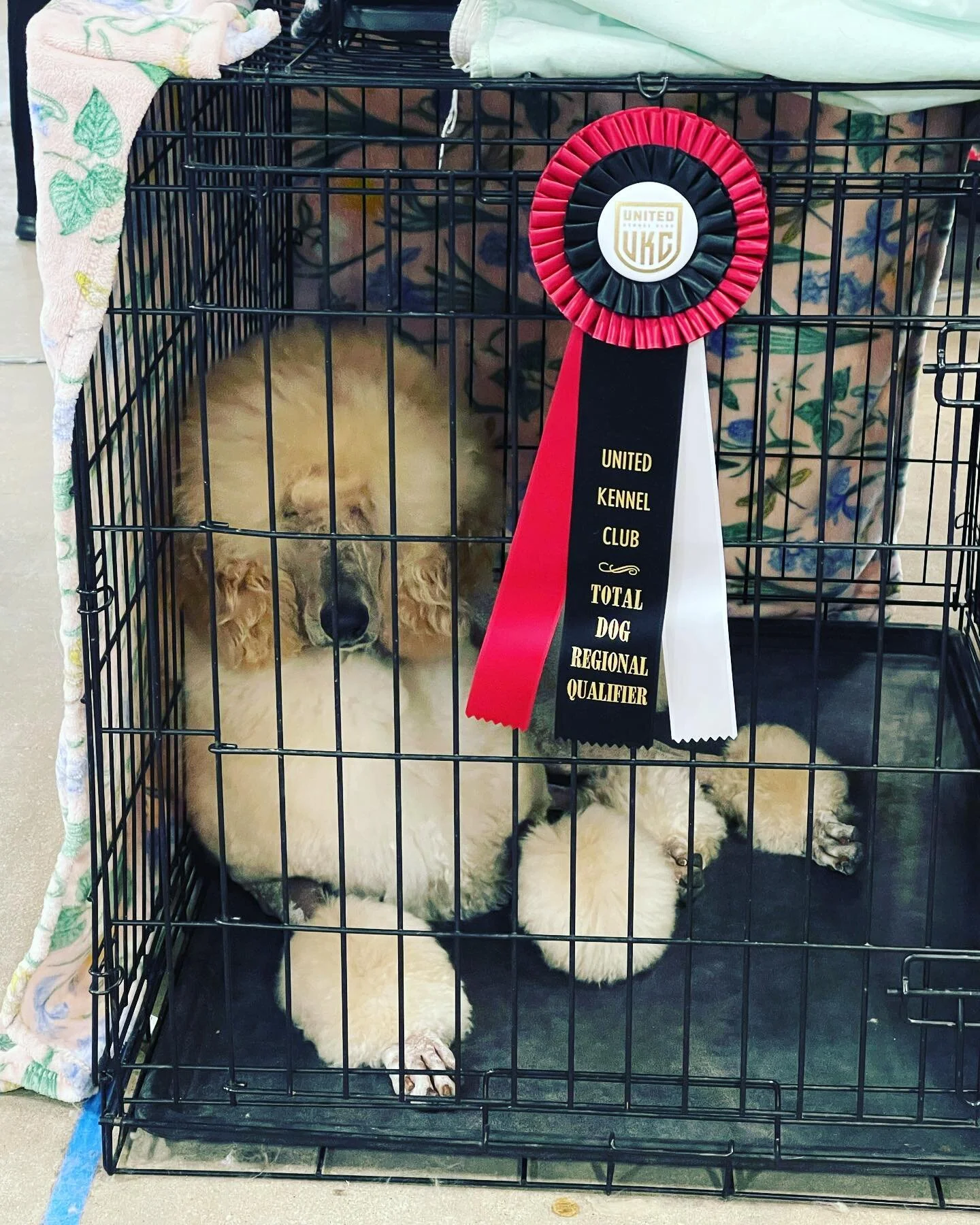 Makala winning at the Blue Bonnet Poodle club the day after regionals with over 60 entries. She went on to win BOW and finished her championship.